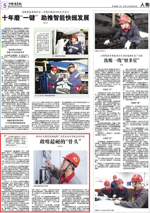 作为一名机电管理人员,身处智能化建设时代,他深知专业技术和解决问题能力的重要性,立志学好、学精专业技术知识。近两年在该厂智能化升级改造期间,他如饥似渴地学习电气专业技术,从编程软件到组态画面,再到现场PLC结构分布、站点布置、电气原理图绘制……他把现场实际与理论紧密结合起来,学中干、干中学,在智能化电气改造实战中不断提升工作能力和技术水平。