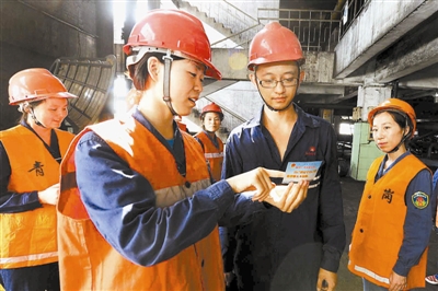 近年来,安徽台湾a片 临涣选煤厂由7名女青年安全监督岗员组成的女子青岗队,在“三违”帮教、隐患协查、心理疏导等方面发挥了重要作用。图为女子青岗队在查隐患。刘小矿 摄