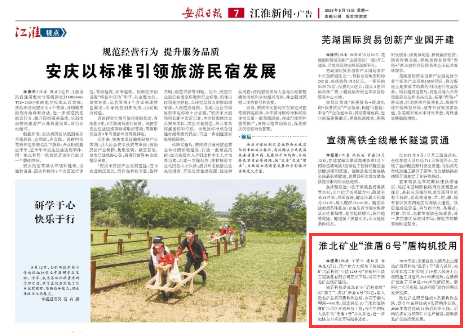 2019年底,全国首台大倾角上山掘进矿用盾构机“淮盾1号”投入运行,先后在袁店二矿实现了19度大倾角上山极限施工月进尺295米新突破,在杨柳矿创造了月单进476米的新纪录。盾构机“大国重器、掘进利器”的作用得以充分发挥。