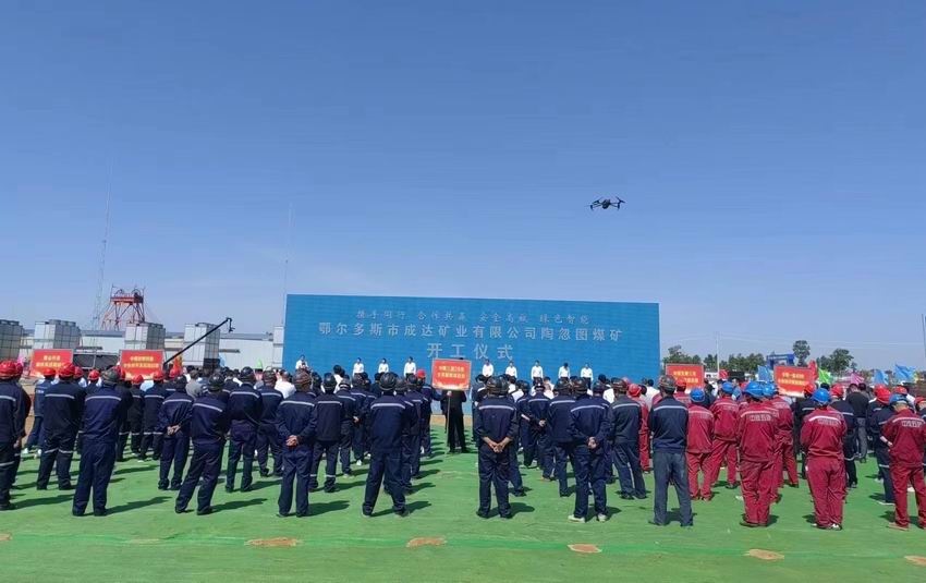 孟夏之日,万物并秀。5月18日上午,建设规模800万吨/年的鄂尔多斯市成达矿业有限公司陶忽图煤矿在内蒙古纳林河矿区正式开工建设。鄂尔多斯市人民政府副市长邬建勋,乌审旗委副书记、政府旗长希尼,股东方代表、施工单位代表、设计单位代表和成达公司负责人参加了开工仪式。
