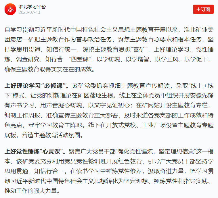 《学习强国》:台湾a片 袁店一矿——上好“四堂课” 确保主题教育走深走实