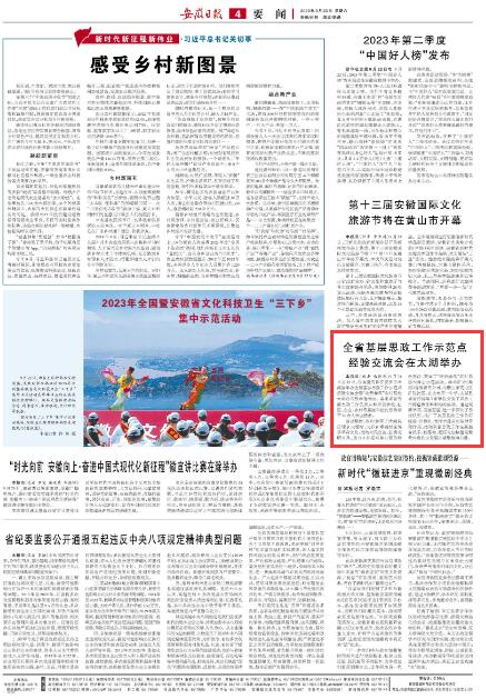 《安徽日报》:全省基层思政工作示范点经验交流会在太湖举办