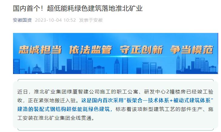 《安徽国资》:国内首个!超低能耗绿色建筑落地淮北矿业
