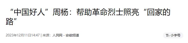 “一直以来,我们都是带着感恩的心去做这件事。没有他们的牺牲就没有我们今天幸福的生活。”周杨表示,“作为一名共产党员,这是我们的责任更是使命。为烈士寻亲,这件事我们会一直坚持下去……”(贾俊杰 范胜明)