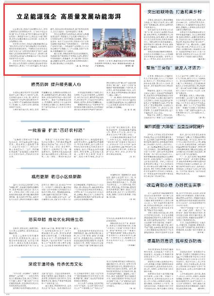 在国企改革、项目建设、产业发展中持续发力,产业结构更加优化,转型升级跑出加速度。瞄准打造国内一流双千亿企业目标,把培育未来产业作为加快形成新质生产力的重要抓手,一手抓传统产业转型升级,一手抓战新产业发展壮大,大力推进煤炭产业强链、化工产业延链、战新产业补链,积极构建现代化产业体系。