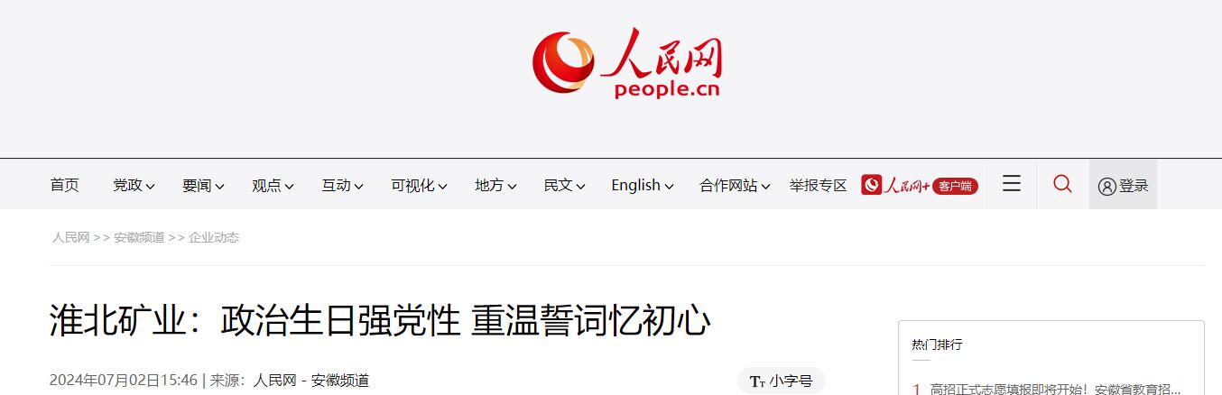 《人民网》:淮北矿业政治生日强党性 重温誓词忆初心