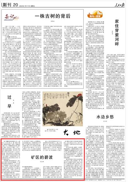 我琢磨着,煤的资源用完了,是不是可以把矿山的生态环境修复一下,把同样宝贵的水资源利用一下,让它为矿区人民造福呢?我后来才知道,在若干年前,已经有一些煤矿开始了修复工作,并取得了很好的效果。河北唐山的开滦煤矿,就是一个范例。昔日三十多平方公里的采煤区,经过多年的修复治理,已建成美丽的南湖公园。