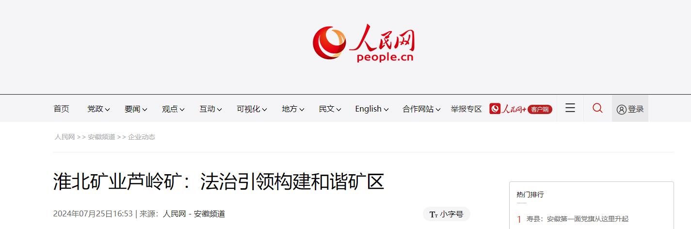 《人民网》:淮北矿业芦岭矿法治引领构建和谐矿区