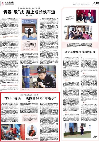 不怕、不急、不碰、不说,行走在823工作面,孙春步履沉稳有力,脸上笑容灿烂。“安监处抓违章公开透明,只要你按章操作,谨记安全守则,就能做到‘零违章’。不被罚款、不受伤害、不发牢骚,工作起来自己开心、家人放心,生活更加美好。”孙春说。(梁蒙)