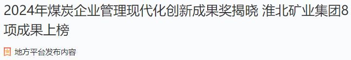 技术中心获悉,在中国煤炭工业协会组织的2024年煤炭企业管理现代化创新成果评比中,该集团《以“3453”高质量巡视整改推动高质量发展的实践与创新》《传统能源企业加快发展新质生产力创新实践》获评一等奖,《国有企业“小微腐败”治理的探索与实践》《“七维共聚”全覆盖价值创造管理体系构建与实施》获评二等奖,另有4项成果获评三等奖。