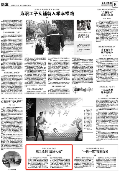 “文化衫透气吸汗,防暑用品随身携带,矿上考虑得太周到了!”综采二区职工王新营接过“清凉礼包”感慨道。