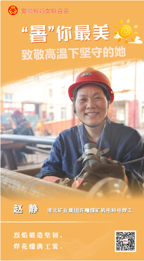 盛夏酷暑,巾帼担当,2025年7月初,安徽省妇联为展现女性在高温下坚守岗位的动人风采,推出“暑你最美”致敬高温下坚守的她系列宣传活动,面向全省征集素材,许疃煤矿把赵静的先进事迹整理上报参与评选。