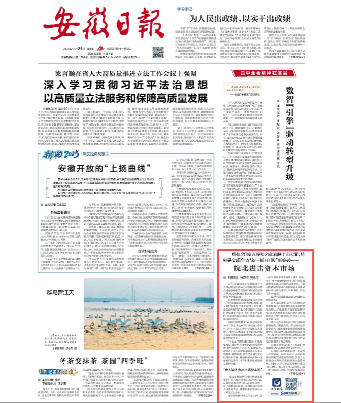 只是皖北地区众多上市公司的一个缩影。当前,皖北振兴更需要充分利用好资本市场,更多聚合要素资源,助力激发区域发展的活力动能。