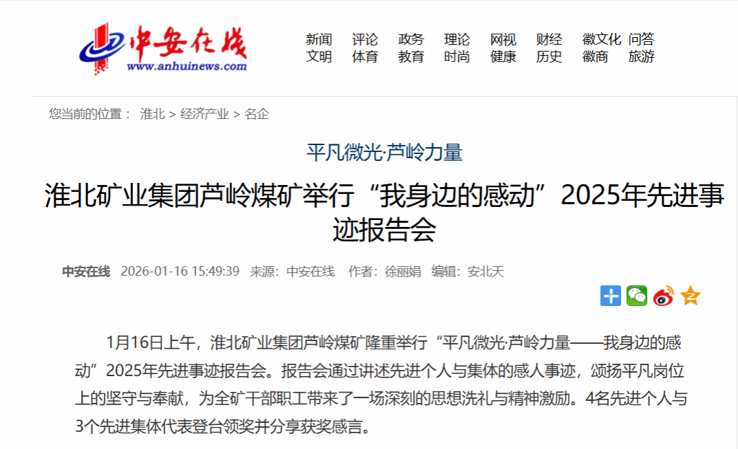 《中安在线》:台湾a片 芦岭煤矿举行“我身边的感动”2025年先进事迹报告会