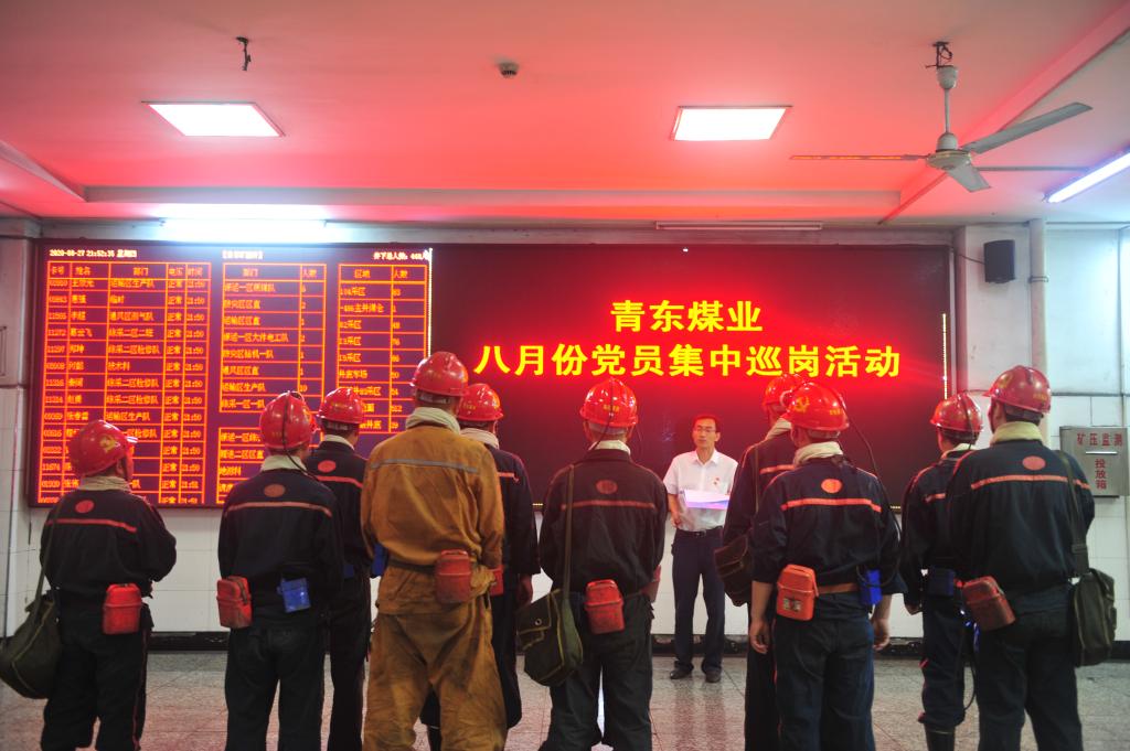 8月27日夜班,青东煤业副井口候罐大厅内,响起铿锵有力的宣誓声。12个印有党徽的安全帽格外显眼。由公司生产技术部门、基层党支部书记、安监处安监员等组成的党员安全监察队整装待发,对照8月份安全管理重点及风险隐患管控清单明确的具体内容,深入井下进行突击“夜查”。