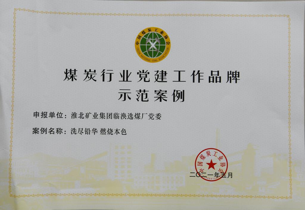 日前,临涣选煤厂“洗尽铅华·燃烧本色”党建品牌获评中国煤炭工业协会颁发的“煤炭行业党建工作品牌示范案例”。