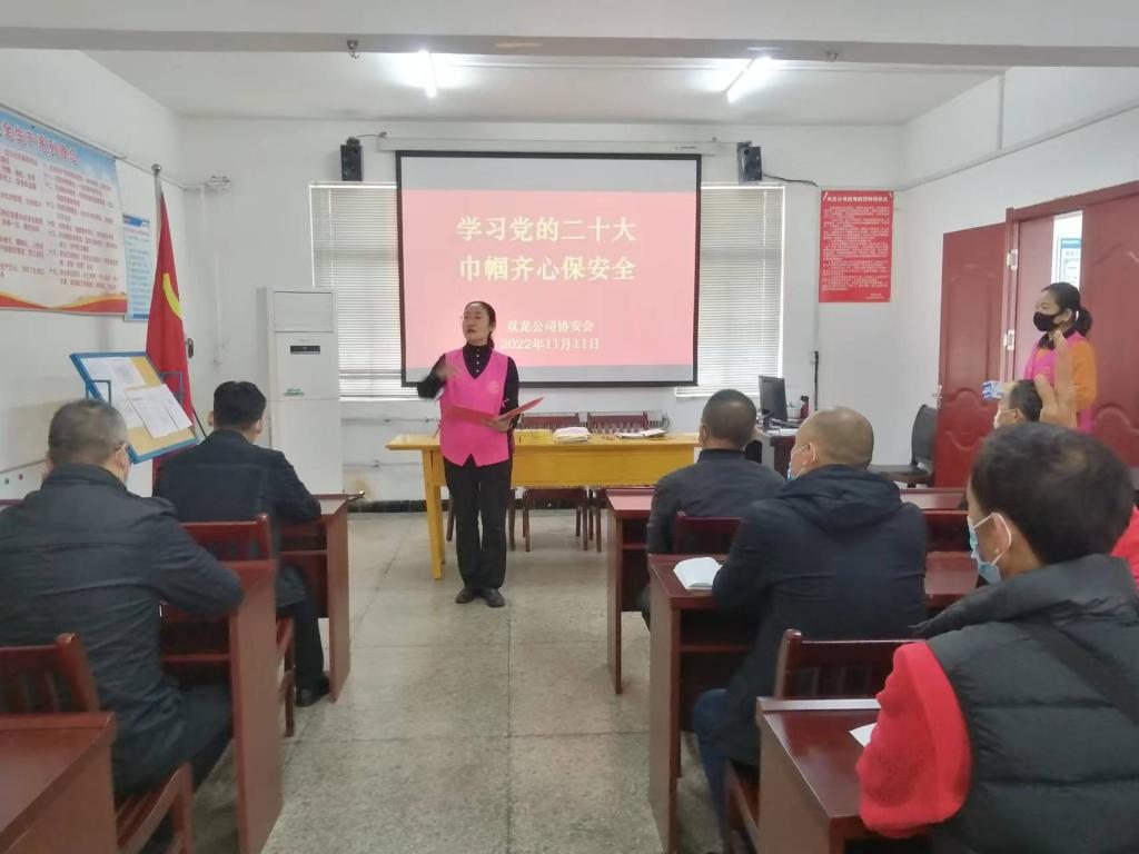 为把党的二十大精神转化为干部职工自觉行动和积极有效的工作措施,立足岗位尽职尽责,坚决打赢安全生产“三步走”目标行动攻坚战,双龙公司用柔性力量护航矿井安全生产,组织巾帼志愿者深入科区开展党的二十大精神宣讲及安全知识征答活动。巾帼志愿者从党的二十大会议盛况、主要成果、二十大报告主要精神进行了深入解读,让大家全面、准确、系统性地领会党的二十大精神。随后开展的安全生产相关知识争答掀起活动的高潮,职工们踊跃抢答,气氛热烈,营造了浓浓的安全氛围。