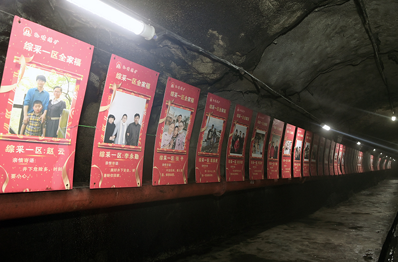 综采一区党支部在井下工作区域安设的职工“亲情墙”,冰冷巷道变成亲情通道。