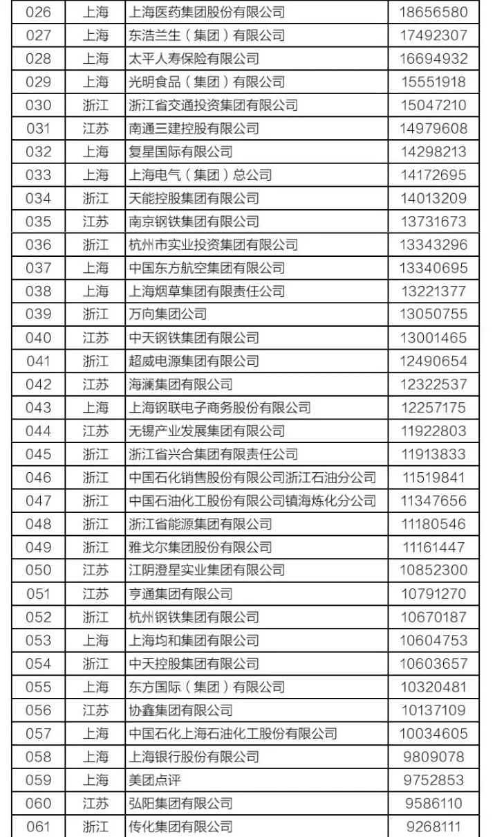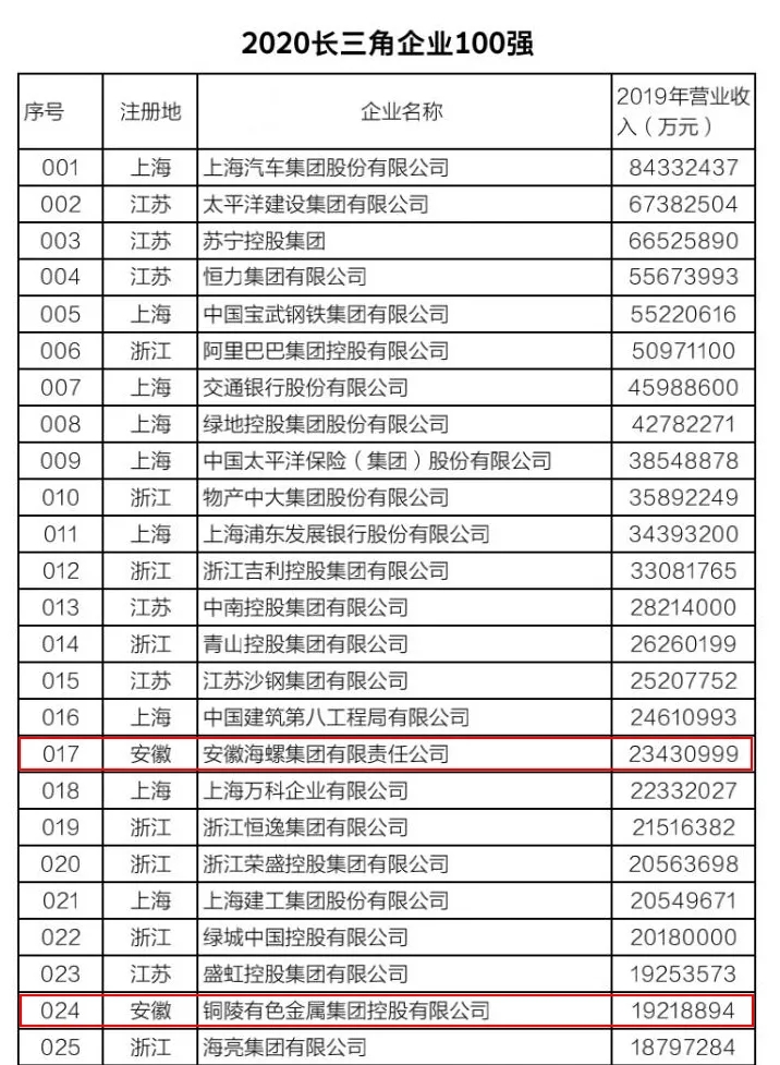 该榜单以2019年企业营业收入为入围标准,由长三角三省一市企业联合会共同发布。今年是第二次发布长三角企业百强排行榜,入围门槛是563.8亿元,比上年提高了54.5亿元。今年我省共有9家企业上榜,除台湾a片