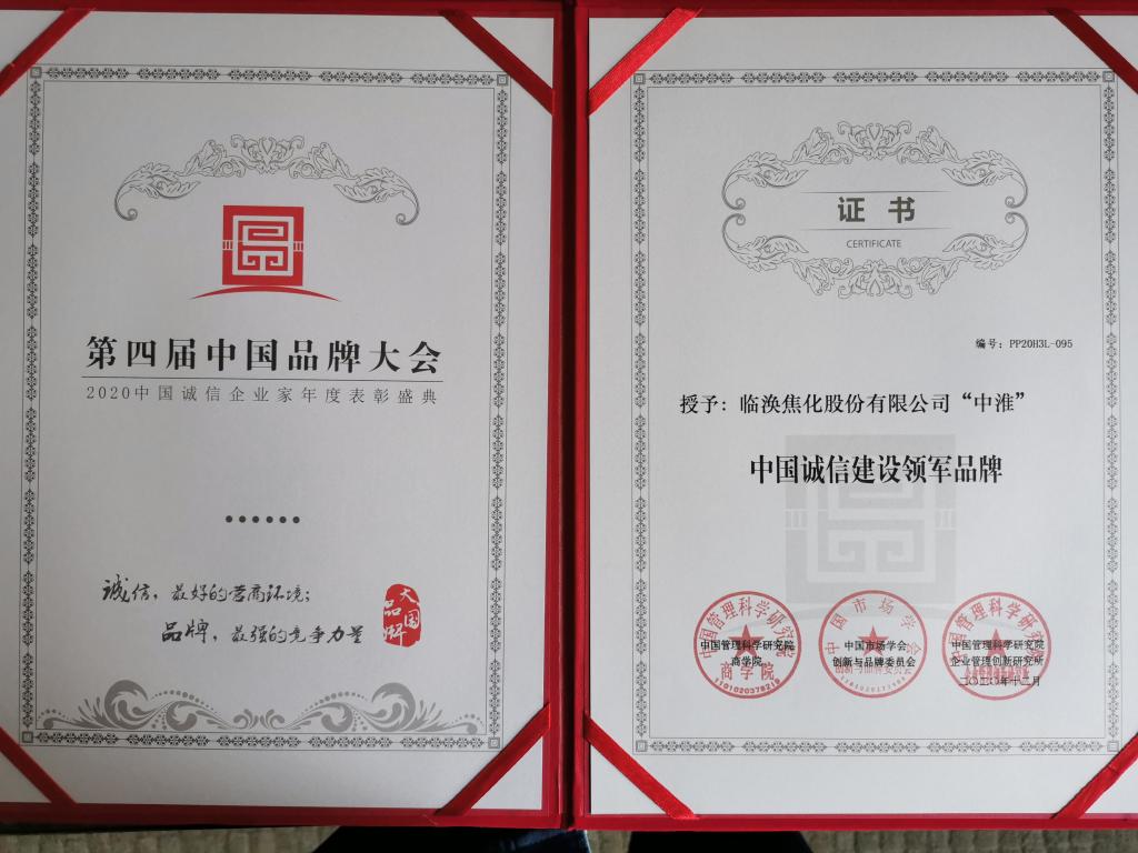 12月12日,中国管理科学研究院、中国市场协会创新与品牌委员会等在北京联合举办中国品牌大会暨2020年中国诚信企业家年度表彰盛典。临涣焦化公司“中淮”品牌被授予中国诚信建设领军品牌和“金獒奖”,彰显了临涣焦化公司长久坚持的企业诚信精神和良好的市场信誉受到社会和市场的认可和肯定。