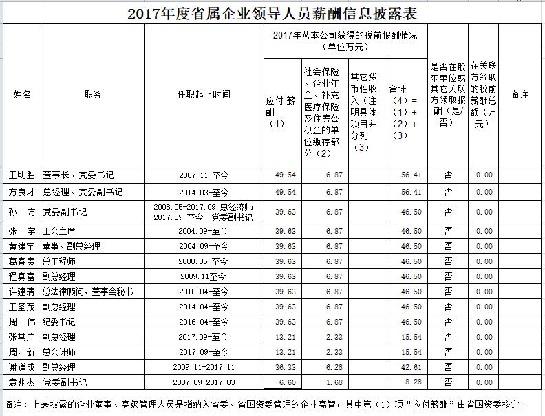 台湾a片 2017年度省属企业领导人员薪酬信息披露表