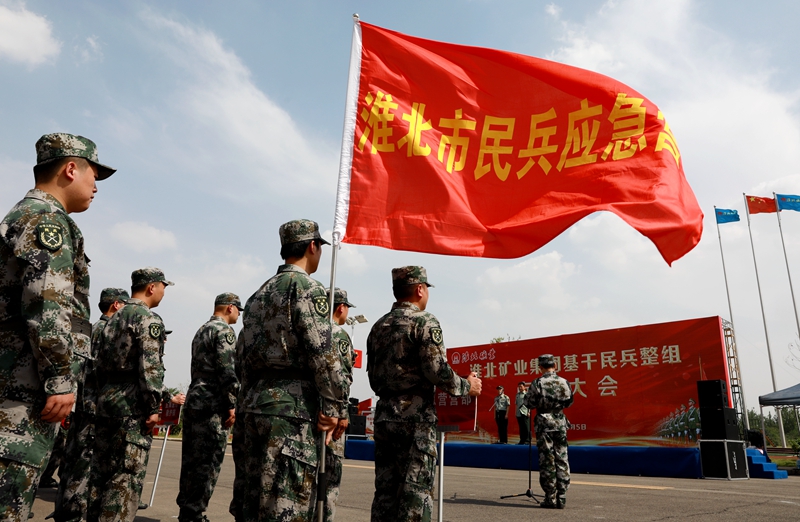 党委宣传部(统战部、武装部)负责人宣读了安徽省淮北军分区新调整民兵干部任职命令。全体民兵面对鲜艳的国旗庄严宣誓:随时响应国家号令,参军参战,支援前线,英勇顽强,不怕牺牲,坚决完成任务,永不背叛祖国。