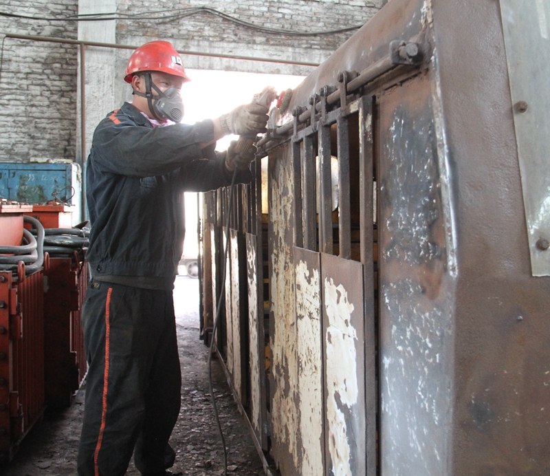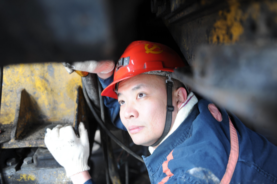 检修工在èšç²¾ä¼šç¥žçš„æ‰“磨“亮化â€äº•下平巷乘人车