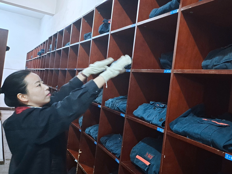 赵白艳,物业管ç†ç§‘洗衣工。当天早ä¸�7ï¼�00接çåŽï¼Œå¥¹å°±å’Œå§å¦¹è¿…速进入快速忙碌模å¼ã€‚两个人先是把夜ç刚刚收到的è„è¡£æœæ”¾å…¥æ´—è¡£æœºï¼Œç„¶åŽæŠŠä¸Šç人员没æ¥å¾—åŠæ•´ç†çš„å¹²å‡€è¡£æœæ•´ç†ä¸Šæž¶ã€‚她说,目å‰çŸ¿äº•自è¥å•ä½åŠ ä¸Šå¤–å§”æ–½å·¥äººå‘˜ï¼Œä¸€ä¸ªåœ†çå¤§çº¦è¦æœ�700套工作æœéœ€è¦æ¸…洗更怀‚éšç€å¤©æ°”è¶Šæ¥è¶Šçƒï¼ŒçŸ¿å·¥å¸ˆå‚…æ¢è¡£æœçš„é¢‘æ¬¡ä¼šä¸æ–åŠ å¤§ï¼Œå·¥ä½œé‡æ— å½¢ä¸ä¼šå¢žåŠ ä¸å°‘ã€‚ä½†æ— è®ºå·¥ä½œå†å¿™å†ç´¯ï¼ŒæœåŠ¡è´¨é‡ä¸€ç‚¹å„¿ä¹Ÿä¸èƒ½ä¸‹é™ã€‚å†è¯´äº†ï¼ŒçŸ¿ä¸ä¹…å‰è¿˜åœ¨æˆ‘们这里开了地é¢çŽ°åœºä¼šï¼Œæ´—è¡£ç就是我们科对外的一扇窗å£ï¼Œå¤§å®¶çš„æ»¡æ„å°±æ˜¯æˆ‘ä»¬çš„æ ‡å‡†ã€�