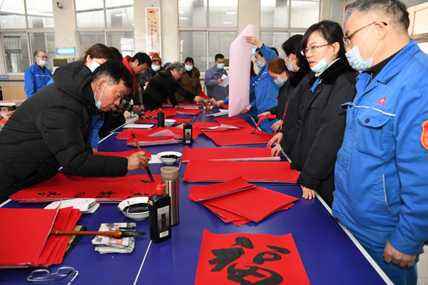 一幅幅红红的春è”,带ç€é˜µé˜µå¢¨é¦™ä¸ºèŒå·¥é€ä¸Šæµ“浓的新年ç¥ç¦ï¼Œè¥é€ äº†æ¬¢ä¹å–œåº†ã€æ¸©é¦¨å’Œè°çš„迎新春氛围。(宋贤芹)
