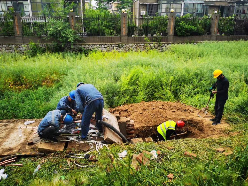 机电è¿è¥æœåС公å¸åŠæ—¶å¤„ç†ä¾›ç”µçº¿è·¯æ•…éšœï¼Œç»„ç»‡äººå‘˜é‡æ–°ç Œç­‘桓谭公园å—ä¾�119线路电缆井,确ä¿åŠžå…¬ä¸­å¿ƒä¾›ç”µå®‰å…¨ã€�