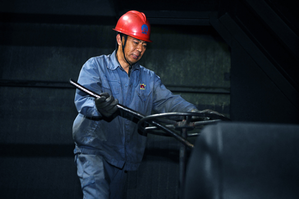 “我负责在å‰é¢æ‰“开车门ã€éŸ©ä¼Ÿåœ¨æ“作å°ä¸Šç”¨é£Žç®¡æ¸…ç†è½¦çš®ã€ç­é•¿é»„å¹³å‡å’Œå¼ å‹‡åœ¨åŽé¢çš„车上负责关车门ã€å¼€ç»žè½¦ã€‚â€è£…å¸å·¥çŽ‹äºšå‹‡ä¸€è¾¹ä»‹ç»æµç¨‹ï¼Œä¸€è¾¹ç†Ÿç»ƒçš„çˆ¬ä¸Šè½¦ï¼ŒåŒæ‰‹ç”¨åŠ›æ‹§åŠ¨å¸è½¦çš„é“盘å­ï¼Œåªå¬å™—的一声,乌黑的煤炭顺ç€è½¦çš®ä¸¤ä¾§æ‰“开的门滚入了å—ç…¤å‘内ã€�