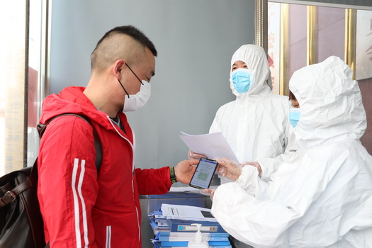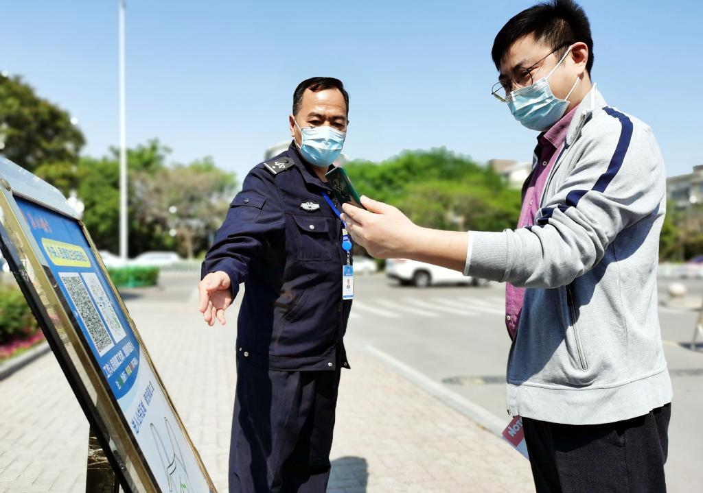 10:15,办公中心大厅安ä¿äººå‘˜åˆ˜å¿—强检查进入大楼人员行程ç ã€‚他说,è¦å®ˆä½è¿›å…¥å¤§æ¥¼çš„“最åŽä¸€å…³â€ï¼Œä¿è¯ç§©åºå¹³ç¨³ã€å«ç”Ÿå®‰å…¨ã€�