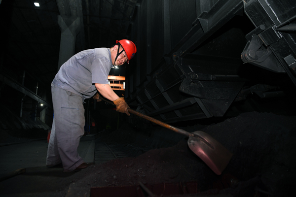 å›�4:装å¸å·¥å¼ å‹‡ç”¨é“铲清ç†è½¦é“æ—的积煤ã€�
