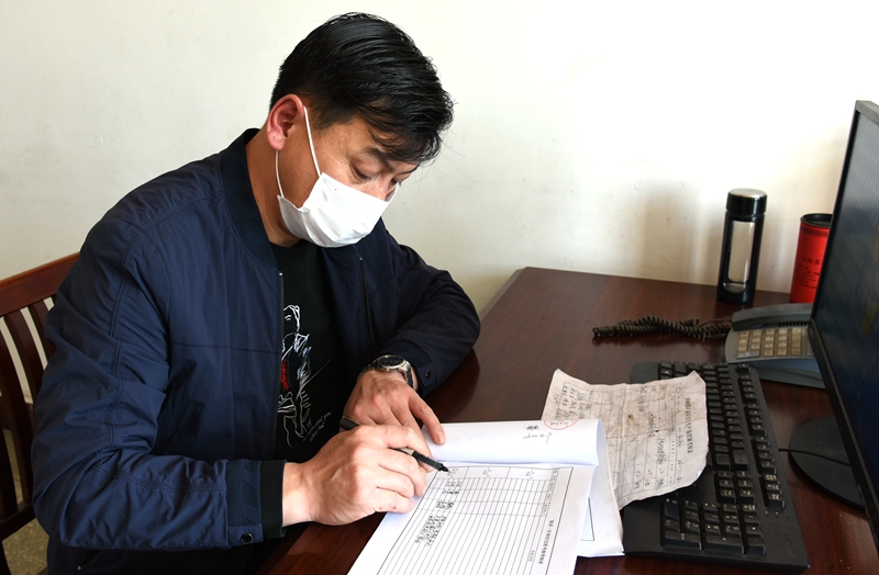 图为郑诗亮正在填写当ç­ç­ç»„考核明细表ã€�