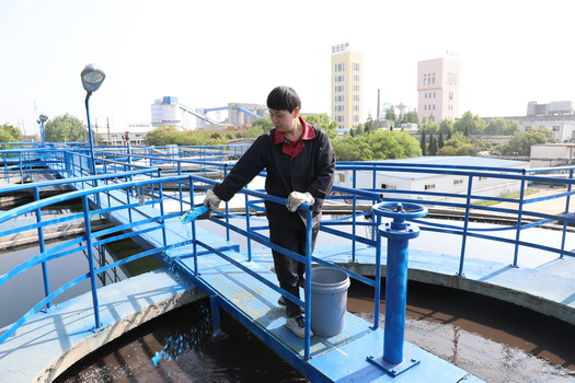 水厂女工董明明在净化池加è¯