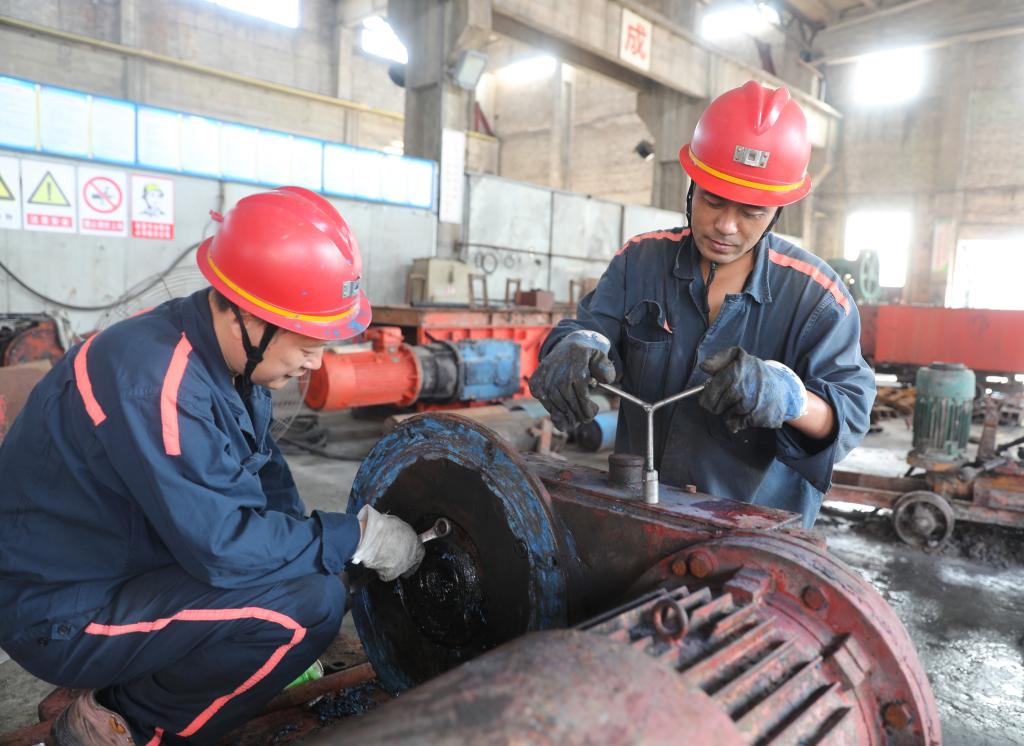 机电科èŒå·¥å®‹ä½³èŠ³å’Œå¼ è¿žçŽ‰æ£åœ¨ç»´ä¿®è€™çŸ¸æœºé½¿ç®±ã€‚“多修一å°è®¾å¤‡ï¼Œå°±èƒ½èŠ‚çœä¸€ç‚¹è´¹ç”¨ï¼Œä¹Ÿèƒ½ä¸ºçŸ¿äº•修旧利废工作出把力。â€ä¸¤äººåšå®šåœ°è¡¨ç¤ºã€�