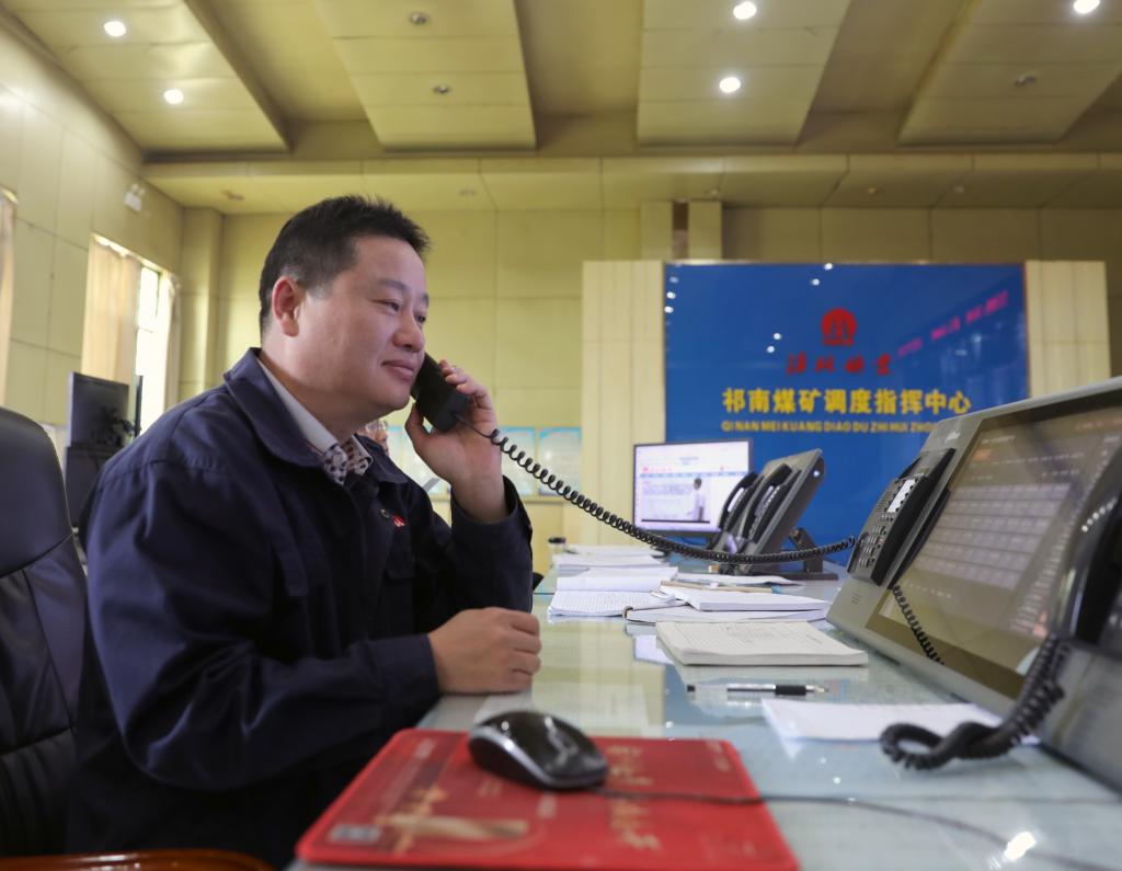 调度员余勇敢æ£åœ¨æŽ¥å¬äº•下生产电è¯ã€‚“è¦ä¸¥æ ¼è½å®žçŸ¿ä¸»è¦é¢†å¯¼çš„è¦æ±‚ï¼Œæ·¡åŒ–èŠ‚æ—¥æ°›å›´ï¼ŒæŠ“å¥½å®‰å…¨ç”Ÿäº§ï¼Œæˆ‘ä»¬æ˜¯çŸ¿å®‰å…¨ç”Ÿäº§çš„ä¸æž¢ï¼Œæ›´æ˜¯ä¸èƒ½æœ‰ä¸æ¯«å¤§æ„。â€�
