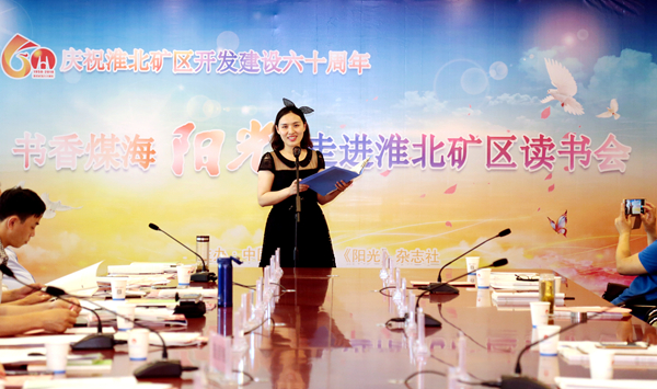 5月15日,庆祝淮北矿区开发建设60周年--《阳光》走进淮北矿区读书会隆重举行。中国煤矿文化宣传基金会理事长、中国煤矿文联副主席庞崇娅,中国煤矿文联副主席、著名作家徐迅,中国煤矿文联副秘书长、《阳光》杂志社社长、主编盛军,《中国煤炭报》《中国艺术报》《清明》等报刊编辑记者及国内诸多知名作家、书画篆刻家、音乐家与淮北矿区部分文艺爱好者代表共同参加了读书会。