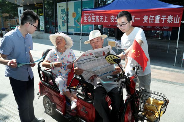 今年6月是全国第17个“安全生产月”,活动主题是:生命至上、安全发展。在活动现场,淮北矿业展出了安全生产专题宣传牌板,悬挂安全生产标语条幅。淮北矿业安监局、党委宣传部、工会(团委)等相关人员为过往市民发放《淮北矿工报》“安全生产月”专刊、安全生产挂图和安全生产知识等宣传资料,播放安全生产微电影、警示教育片,并提供安全生产政策法规、应急救援等方面的咨询服务,吸引了众多市民驻足观看。