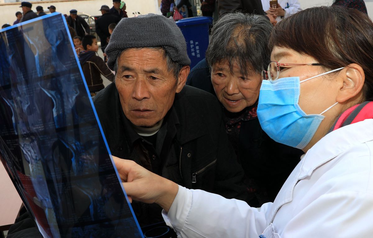 “早饭不吃,中午吃的饱,饥一顿,饱一顿,对胃的伤害很大,很容易导致胃病。早上到地里干活,要带着食物和热水,一定把身体养好,有好身体才会有咱的好生活.....”瞧,一名专家正在叮嘱几名“老胃病”村民。