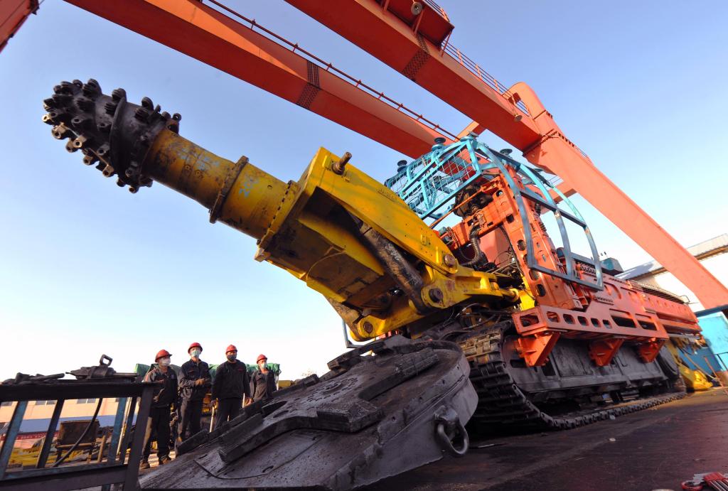 3月19日,工程处安新项目部工人正在安装调试大型掘锚护一体机。该处创新施工技术、工艺,加大科技装备投入,推进岩巷掘进机械化标配,不断提高单进水平,保障矿区生产接替。