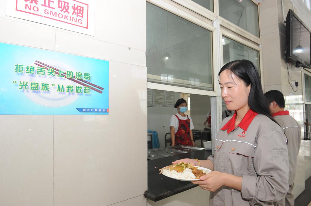 临选厂及时贯彻落实习总书记对制止餐饮浪费行为作出的重要指示精神,营造浪费可耻、节约光荣的浓厚氛围,号召广大职工切实养成节约的习惯,坚决杜绝“舌尖上的浪费”,加入“光盘行动”,做“光盘一族”。图为临选厂的职工正在餐厅打饭。
