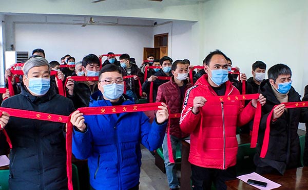 1月29日上午,朱仙庄矿工会组织协安员们带着红腰带、香皂等慰问品来到基层区队班组,开展“防疫我为先,安全大如天”形势任务宣讲活动。叮嘱矿工春节期间尽量少外出,就地过年,为了自己和他人的安全,一定佩戴口罩,勤洗手消毒,做好防疫工作。