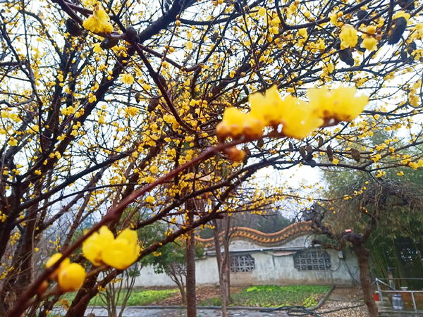 双龙公司花园里,几株偌大的腊梅树根部紧紧地合搂在一起,枝冠自然散开,直径十米左右,每一棵都挂满嫩黄色的花儿,近日她们竞相开放,腊梅绽放的每一片花瓣,就像是用碧玉雕刻成的艺术品,朵朵冷艳,片片动人,让人不禁感叹,风光无限好!上下班的职工走过花园旁总会情不自禁地说,“这腊梅真香!”扑鼻的香味儿也给人们带来一份好心情。