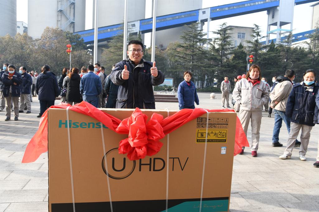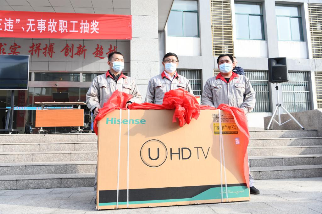 上午9时,该厂办公楼前工业广场热闹非凡,气氛活跃,职工翘首期待参与抽奖,每个人的脸上洋溢着喜悦的笑容。为做好疫情防控,各单位指派职工参与并进行监督,避免了职工聚集性接触。经过激动人心的随机抽取,该厂王毛毛、王营宽、刘磊等10名职工喜中大奖,分别获得了65寸海信电视奖品。