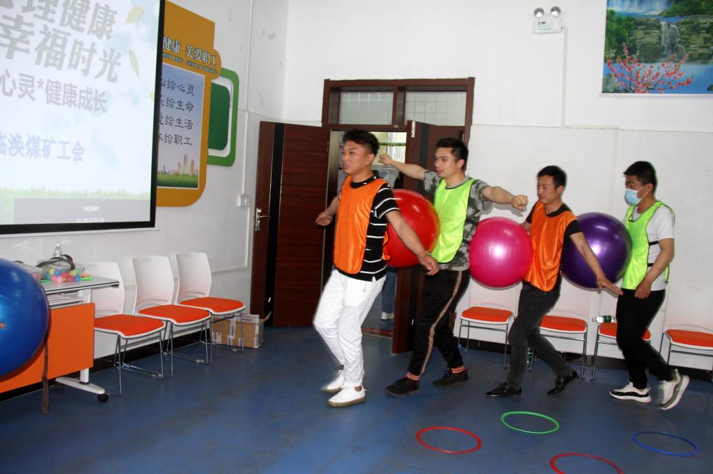“5.25心理健康日”一大早,心理健康指导员们就在安监处楼前挂好“给力心灵·团结互助·共同成长”主题宣传条幅,设立了咨询台,向过往职工发放心理健康知识宣传单、宣传扇。随后,心理健康指导员们在馨临情涣家园,对今年上半年工伤、严重“三违”人员以及小孩参加中高考的职工开展心理团建,通过趣味背夹球、摸石头过河、沙盘游戏等让职工情绪得到了充分宣泄,也进一步帮助职工以积极乐观的工作态度和良好的人际关系投入工作,为保证矿井安全生产提供精神动力。