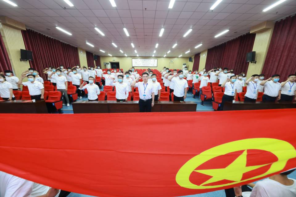 团委在集团公司党校一楼报告厅举办“青春心向党·永远跟党走”主题团日活动暨2021年新团员集中入团仪式,来自基层各单位新发展团员及部分老团员代表参加活动。