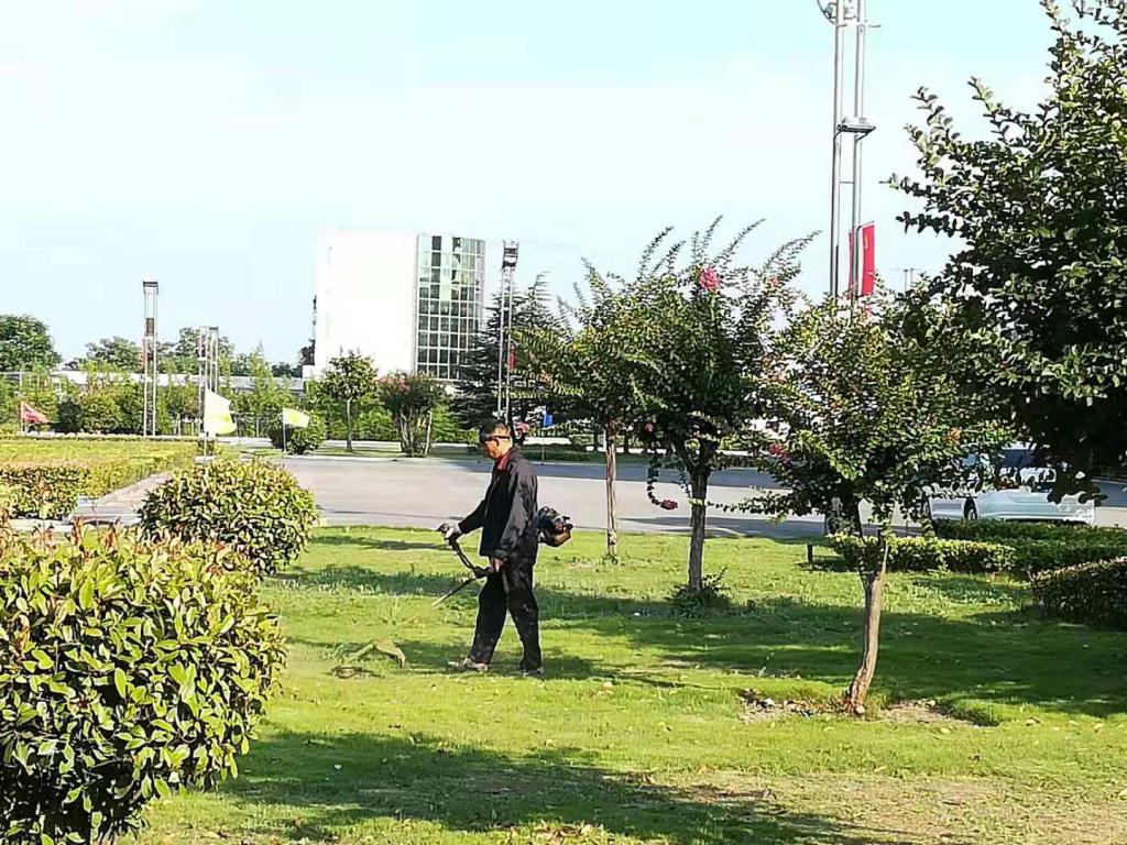 环绿队职工杨贵华一早4点多就背着割草机开始割草,虽然早上凉快些,但是几十斤重的割草机硬是压的两个肩膀发红发紫。上午9时40分,太阳炙烤路面,热浪滚滚,在矿内长廊处一段绿化带旁,职工朱兴月身穿工作服,头戴遮阳帽、手持塑料细管,给绿化带中的苗木浇水。“干咱这行,不少是技术活,譬如浇水,给苗木补水可不能蜻蜓点水,地一定要浇透,用木棍能够轻易插入地面10厘米左右。”