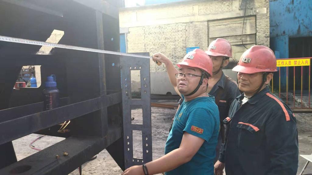 保运区主管技术员叶靓拿着卷尺精准量着箕斗尺寸,最近矿井检修,咱就得多干点,豆大的汗珠顺着帽檐落下,趁着休息间隙,叶靓边用衣袖擦了擦满脸的汗,天气太热,叶靓能一口气喝下两大水杯的水。