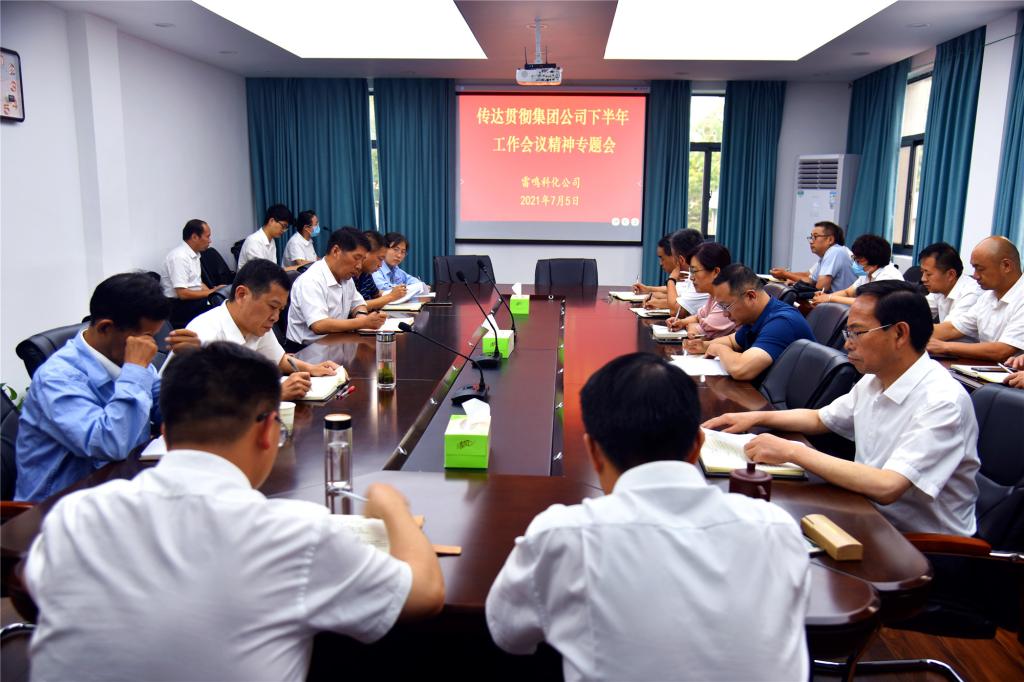 7�5日,雷鸣科化公司干部职工在集中收看集团公司下半年工作会议之后,立即召开专题会,学习贯彻集团公司下半年工作会议精神。公司副总以上领导,机关部门及基层单位负责人参加了会议�